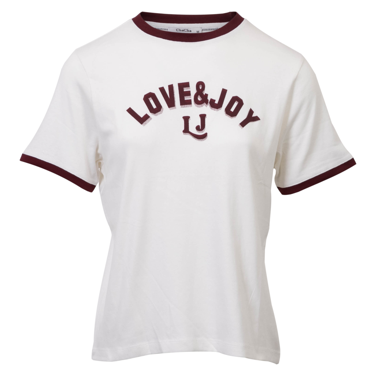 ChaCha T-shirt med print. T-shirten har korte ærmer og rund halsudskæring med hvide kontrastkanter. Blød bomuldskvalitet. Perfekt til hverdagsbrug.