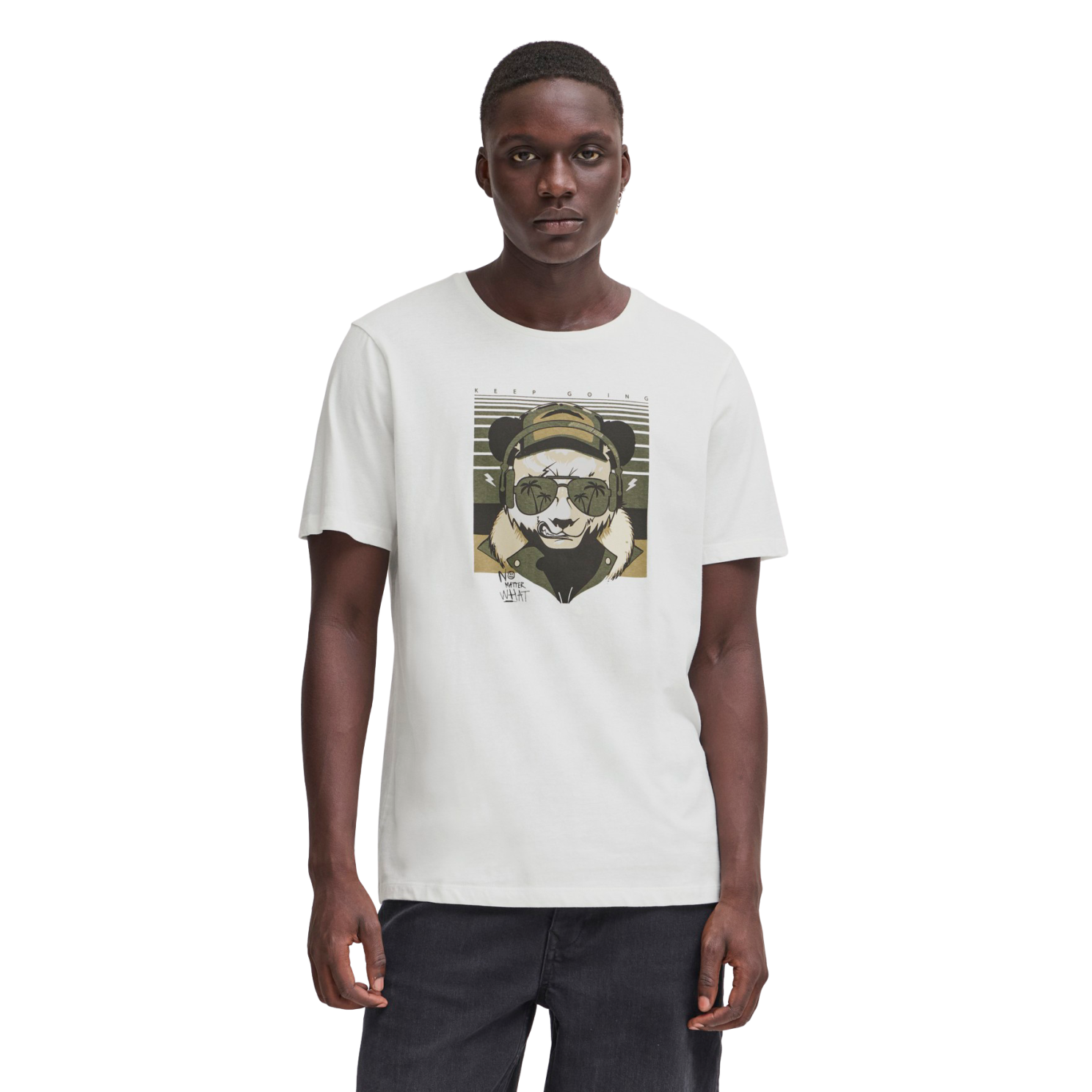 Blend t-shirt med print på fronten. T-shirten har en klassisk rund hals og korte ærmer.