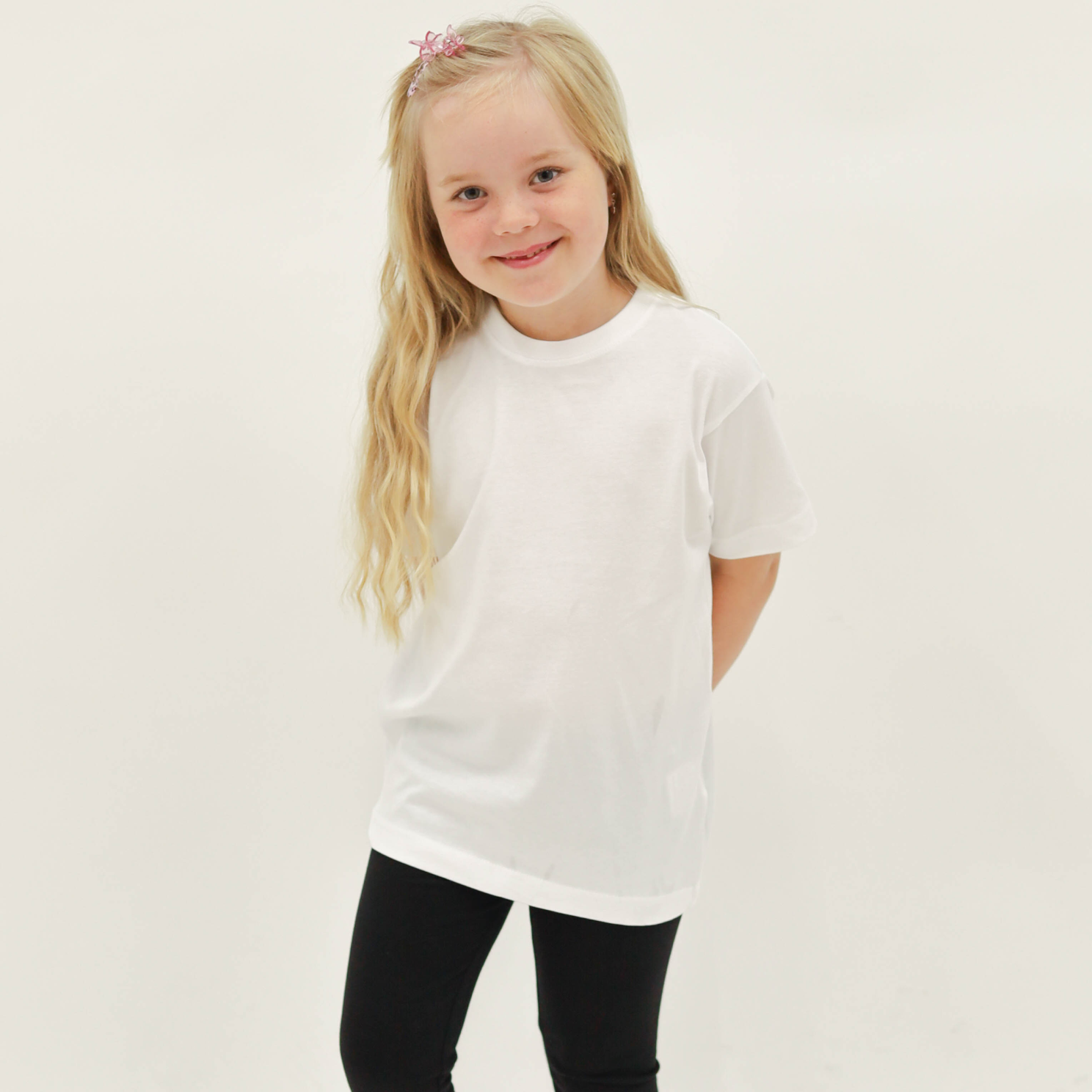 ID klassisk T-shirt til børn. Klassisk T-shirt med rund hals. Fire-lags halsrib og nakke- og skulderbånd. Forkrympet for stabilitet.