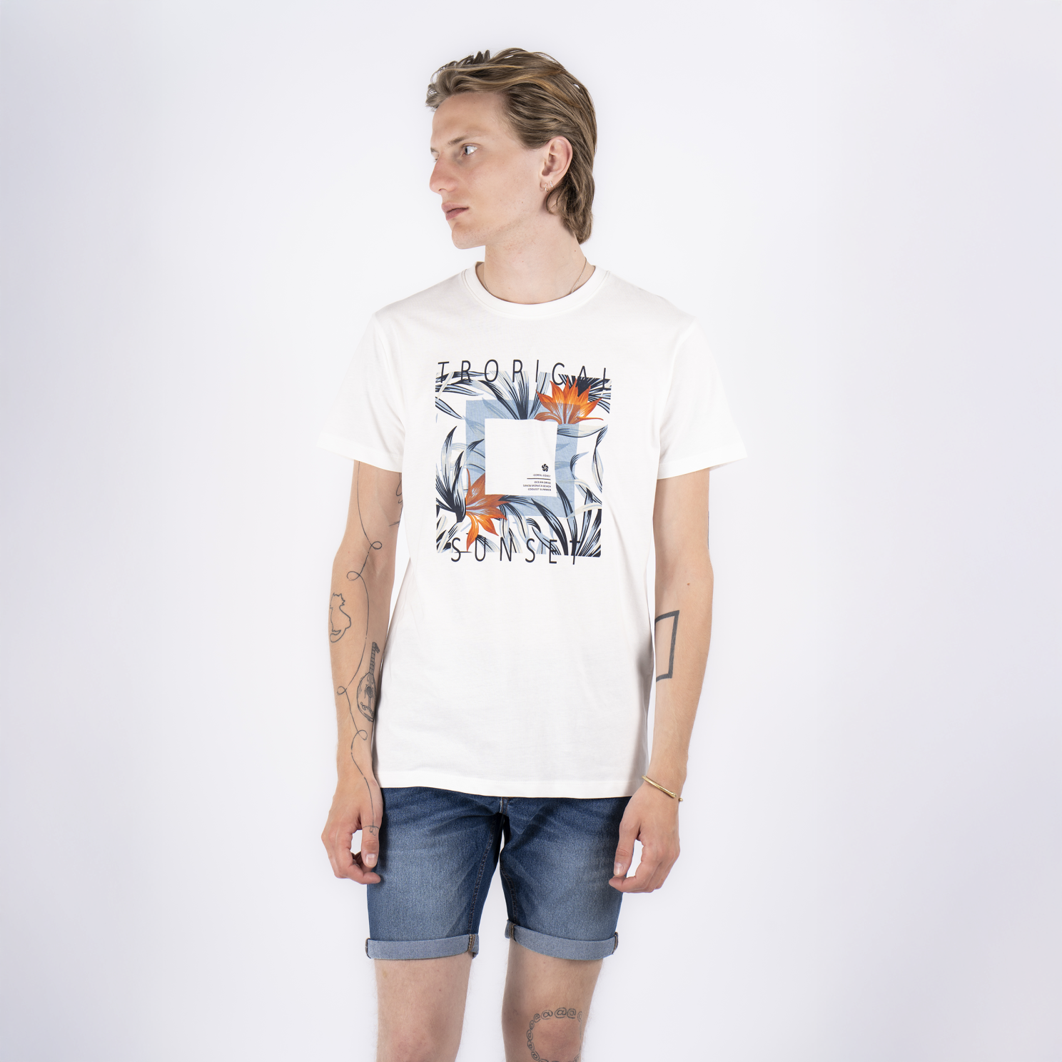 Marcus Ando kortærmet t-shirt med print på fronten. T-shirten er fremstillet i blød bomuld og designet med rund halsudskæring.