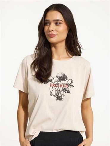 Fin T-shirt med rose print og broderi foran. Kort ærmer og rund hals. Klassisk fit. Brystmål. 108 cm – Længde. 64 cm Kvalitet. 70 Bomuld – 30 Polyester