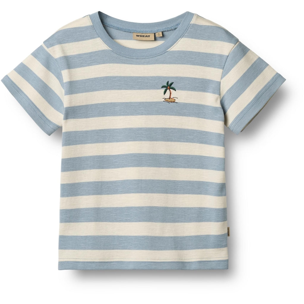 Liam T-shirt. Calm Blue Stripe. Wheat Wheat