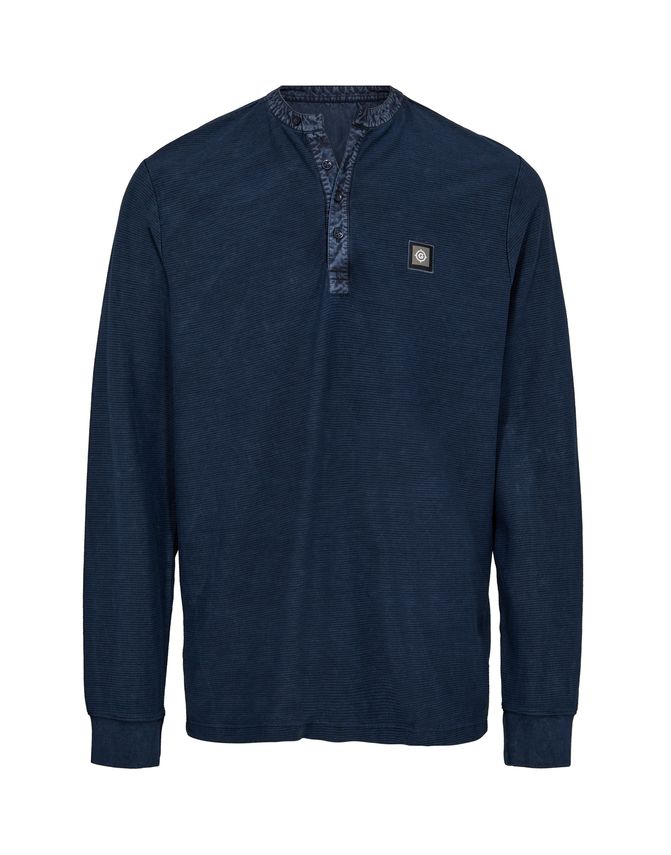 Kortærmet t-shirt med knaplukning i halsen og brystlomme.