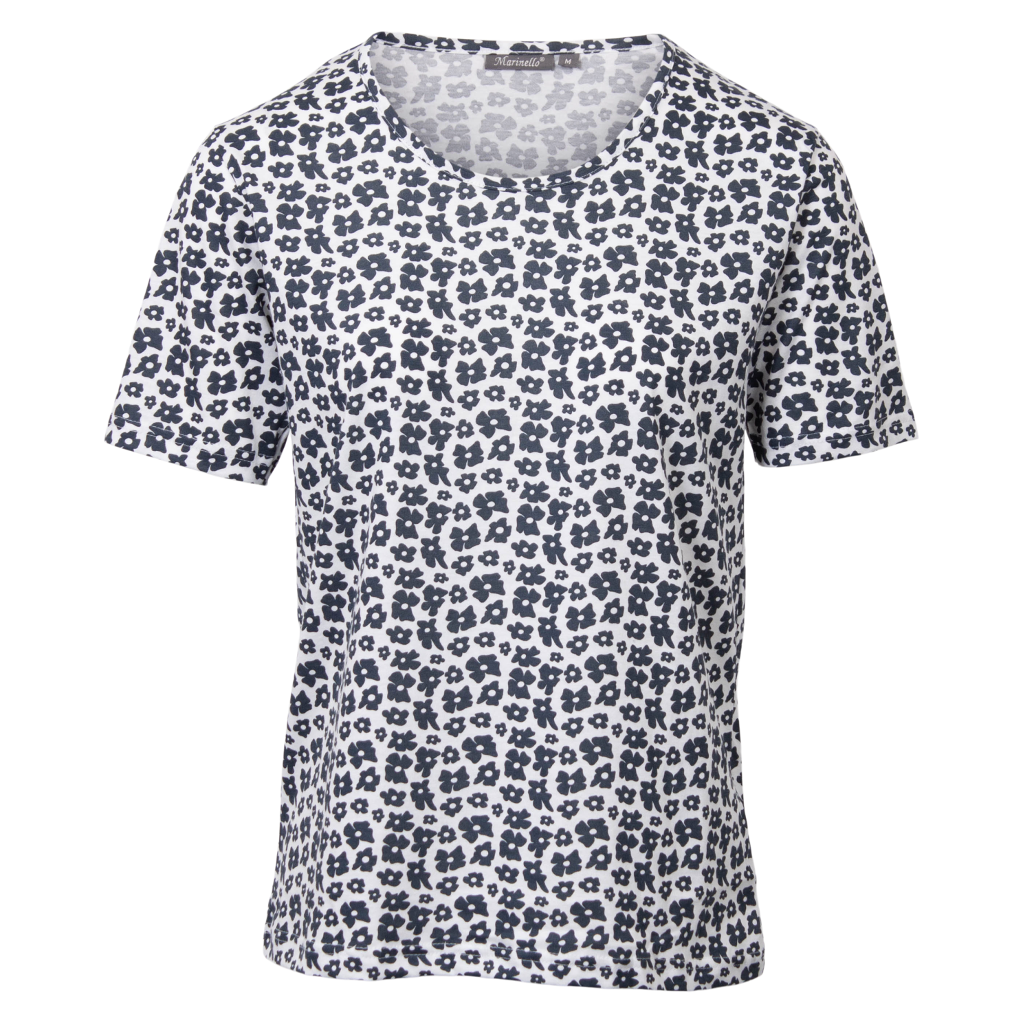 Marinello dame t-shirt. Super smart t-shirt med all-over print. Modellen har rund halsudskæring. Modellen er lavet i materiale. Som gør den behagelig, at have på.