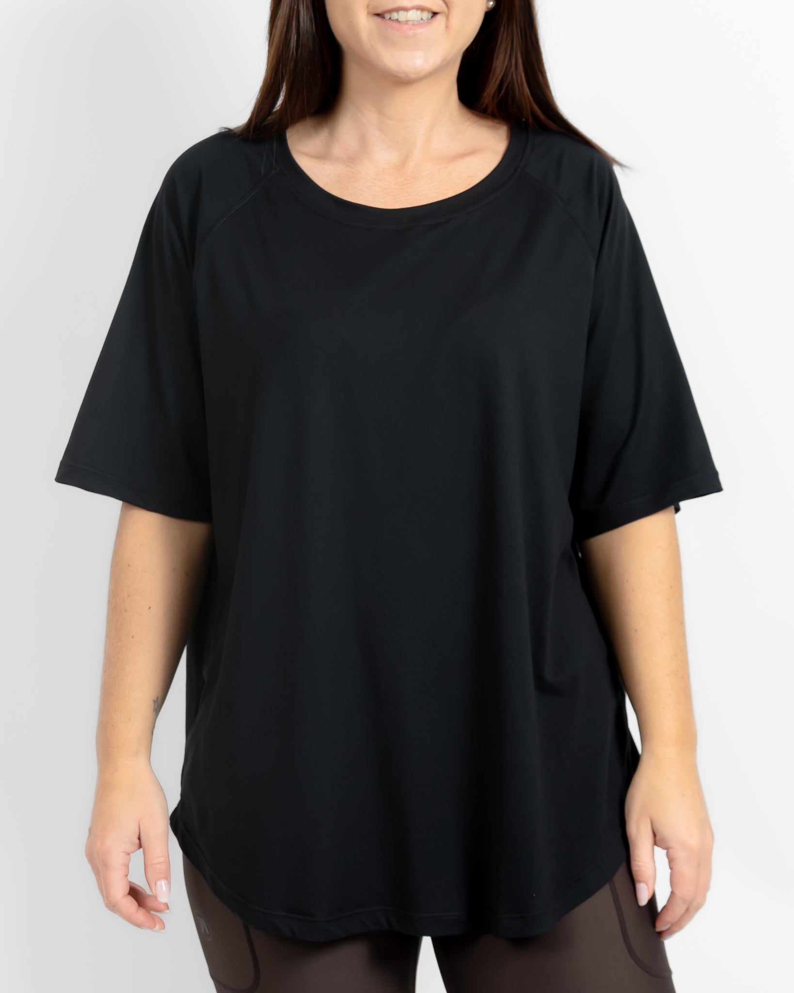 Mira Relaxed T-Shirt er lavet i et ultrablødt. Let materiale. Der føles fantastisk mod huden. Pasformen er komfortabel og dejlig løs med et pænt fald. Den sidder let fra kroppen og er nem, at style til leggings. Capris og shorts. Eller med dine øvrige favo